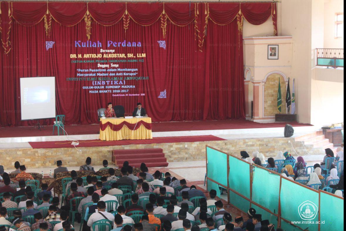 Guluk-Guluk - Instika – Instika mengadakan kuliah perdana bagi mahasiswa baru pada tanggal 3/9/2016 kemarin bertempat di Aula Besar As-Syarqawi Annuqayah. Narasumber yang diundang untuk mengisi kuliah tersebut adalah Hakim Agung/Ketua Kamar Pidana Mahkamah Agung RI, Dr. Artidjo Alkostar, SH, LLM., seorang Hakim Agung yang paling ditakuti koruptor akhir-akhir ini.