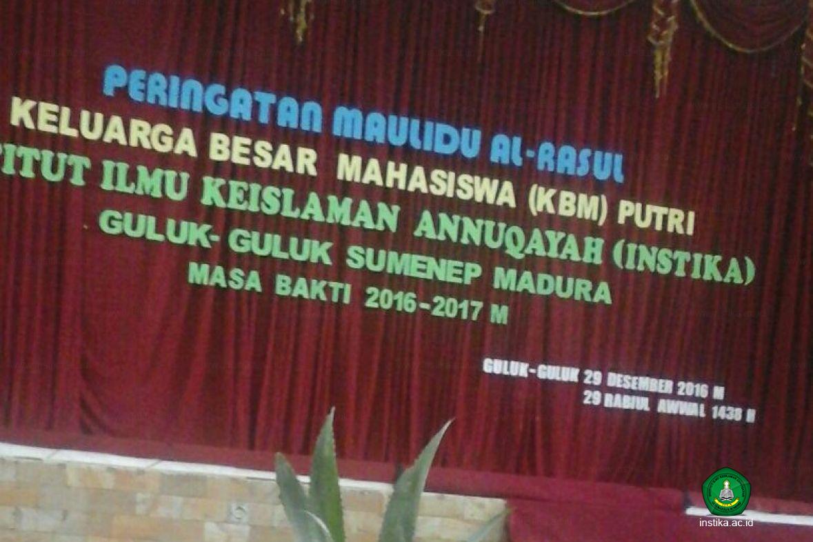 Guluk-Guluk - Instika - Keluarga Besar Mahasiswa (KBM) Putri Instika, mengadakan Maulid Nabi di Aula Assyarqawi Instika, Kamis (29/12/2016). Selain KBM, seluruh mahasiswi diundang untuk ikut merayakan Maulid Nabi ini.