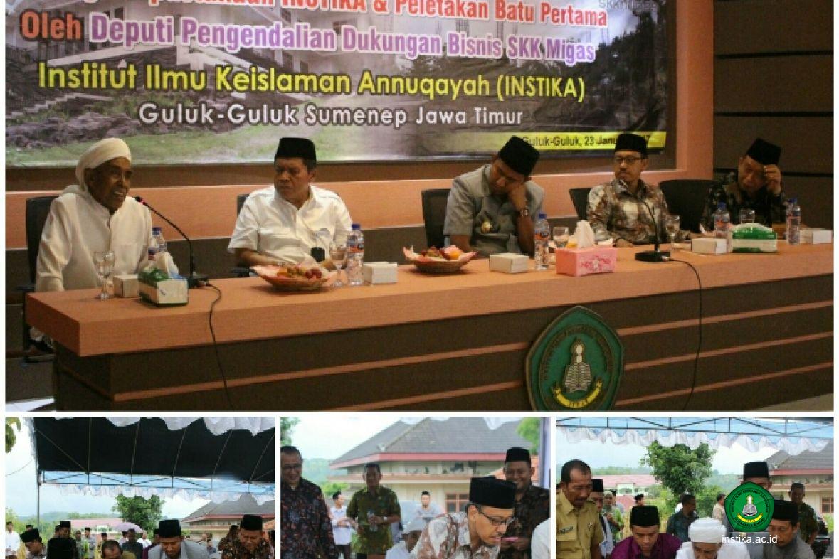 Pada, Senin (23/01/2017) siang yang lalu, Instika mengadakan “Peresmian Dimulainya Pembangunan Gedung Perpustakaan Instika dan Peletakan Batu Pertama oleh Deputi Pengendalian Dukungan Bisnis SKK Migas”. Acara dihadiri Pengasuh Annuqayah KH. Ahmad Basyir AS, Kepala SKK Migas Perwakilan Wilayah, Jawa, Bali dan Nusa Tenggara (SKK Migas Perwakilan Jabanusa) Ali Masyhar beserta rombongan, Wakil Bupati Sumenep Achmad Fauzi, Rektor, Wakil Rektor, dosen, dan perwakilan mahasiswa Instika.