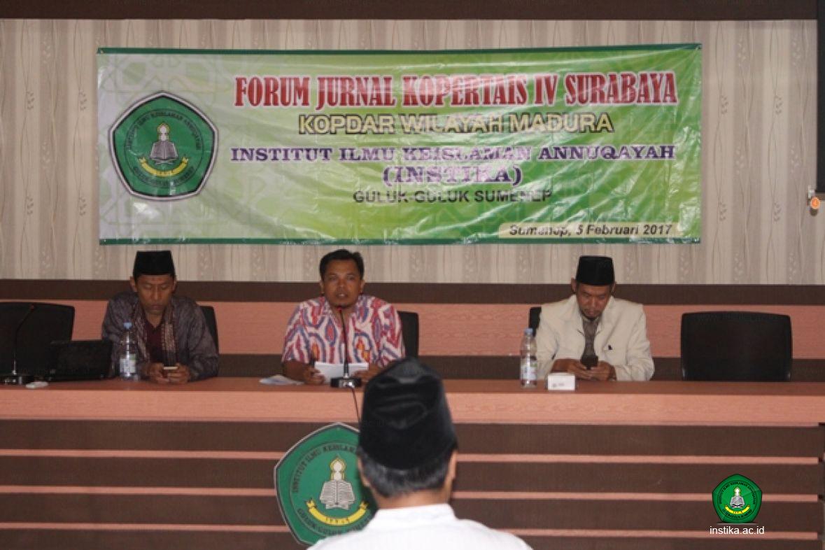 Guluk-Guluk - Instika - Lembaga Penelitian dan Pengabdian Kepada Masyarakat (LP2M) Instika mengadakan pertemuan antar redaktur jurnal se Kopertais IV Surabaya dengan tajuk Kopdar Foredj (Kopi Darat Forum Redaktur Jurnal) Kopertais IV Cluster Madura dalam rangka Klinik Jurnal From Zero. Sekitar 20 redaktur jurnal dari masing-masing perguruan tinggi di bawah Kopertais IV cluster Madura hadir dalam acara ini.
