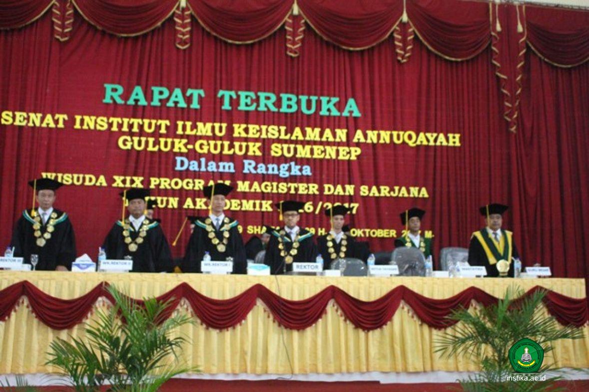 Guluk-guluk - Instika - Instika menggelar Rapat Terbuka dalam rangka Wisuda XIX Program Magister dan Sarjana Tahun Akademik 2016/2017 di Aula Asysyarqawi Instika, Ahad (29/10/2017). Rapat Terbuka Wisuda dipimpin Rektor Instika Drs. H. Abbadi Ishomuddin, MA.