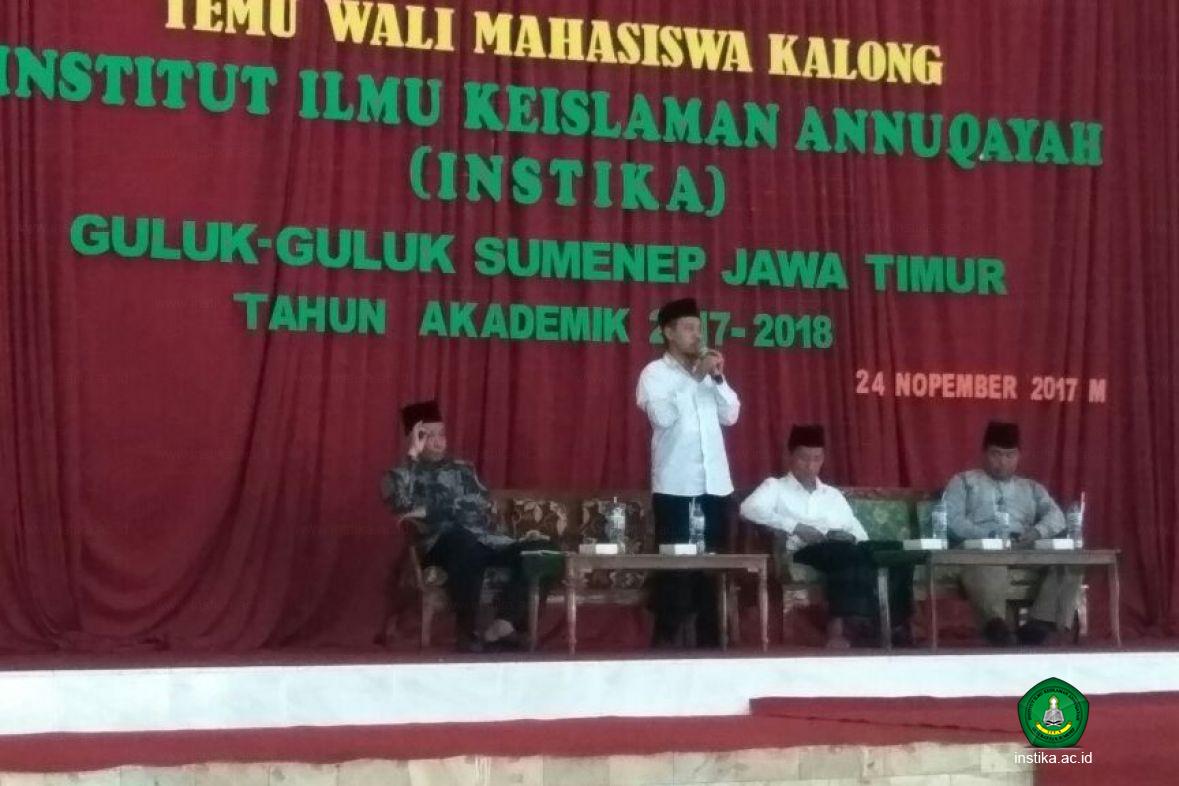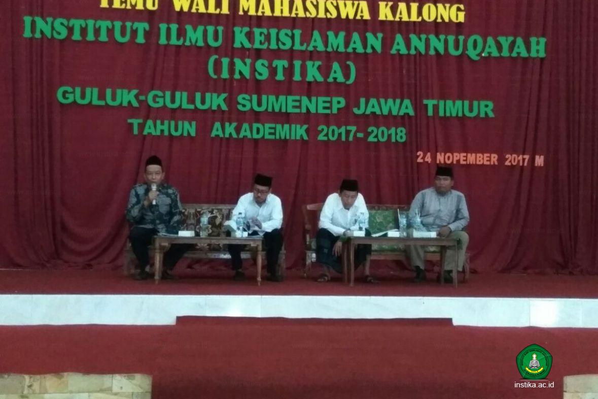 Guluk-guluk - Instika - Wakil Rektor III Drs. H. A. Washil, M.Pd.I. yang membidangi kemahasiswaan bekerjasama dengan Badan Eksekutif Mahasiswa (BEM) Putri Instika, menggelar Temu Wali Mahasiswa Kalong khusus putri, Jumat (24/11/2017) di Aula Asysyarqawi Instika dalam rangka silaturahim dan membicarakan kode etik mahasiswa kalong.