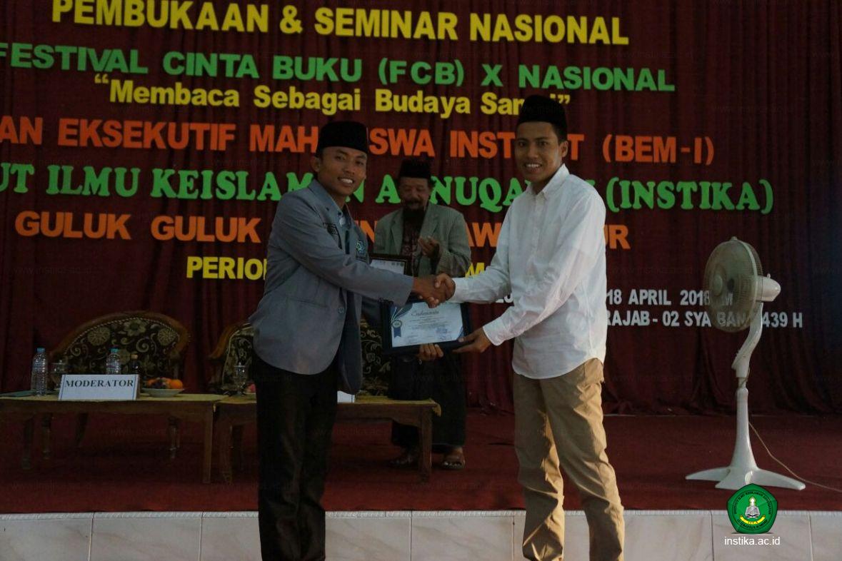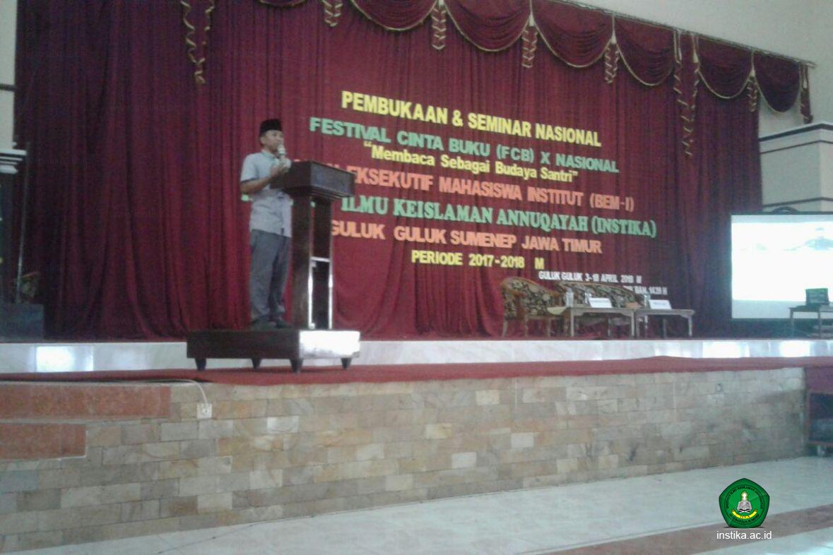 Guluk-Guluk – INSTIKA – Festival Cinta Buku (FCB) X Nasional Badan Eksekutif Mahasiswa (BEM) Institut Ilmu Keislaman Annuqayah (INSTIKA) Guluk-Guluk Sumenep resmi dibuka oleh Kepala Dinas Pendidikan (Disdik) Sumenep Drs H A Shadik M.si, Sabtu (07/04/2018) di Auditorium As-Syarqawi INSTIKA.