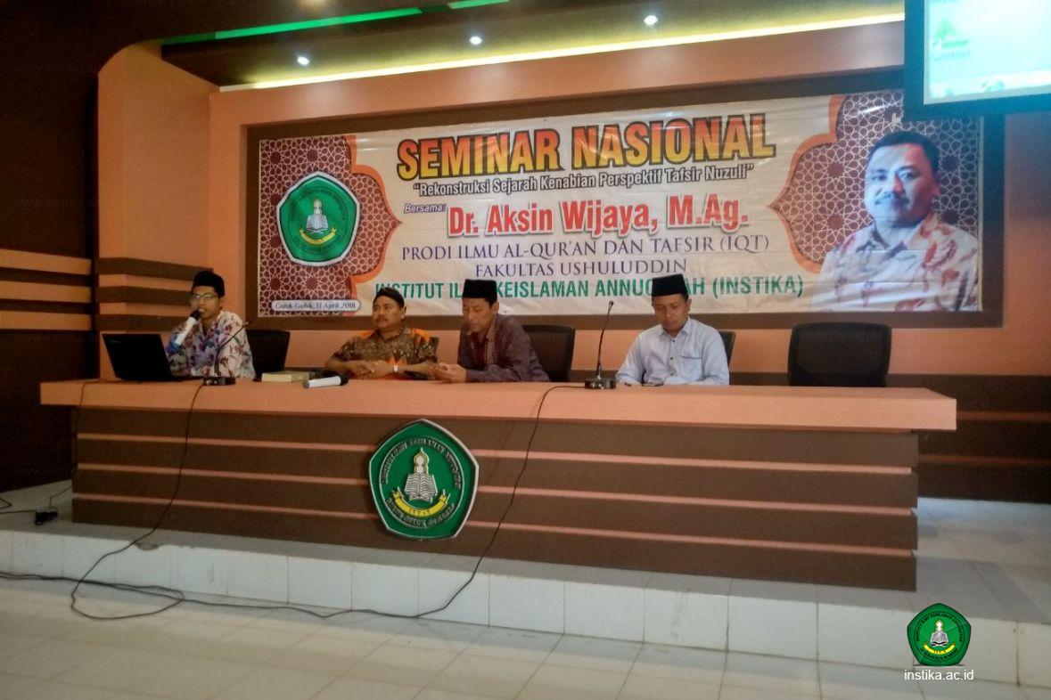 Guluk-Guluk - INSTIKA - Wakil Rektor I Dr Ach Maimun M Ag, Selasa (17/4/2018) mengatakan, seorang akademisi harus mengikuti perkembangan ilmu pengetahuan. Hal ini disampaikannya dalam sambutan pada Seminar Nasional bertema ‘Rekonstruksi Sejarah Kenabian Perspektif Tafsir Nuzuli’ bersama Dr Aksin Wijaya M Ag yang diselenggarakan Fakultas Ushuluddin di Ruang Pertemuan Institut Ilmu Keislaman Annuqayah (INSTIKA) Guluk-Guluk Sumenep.