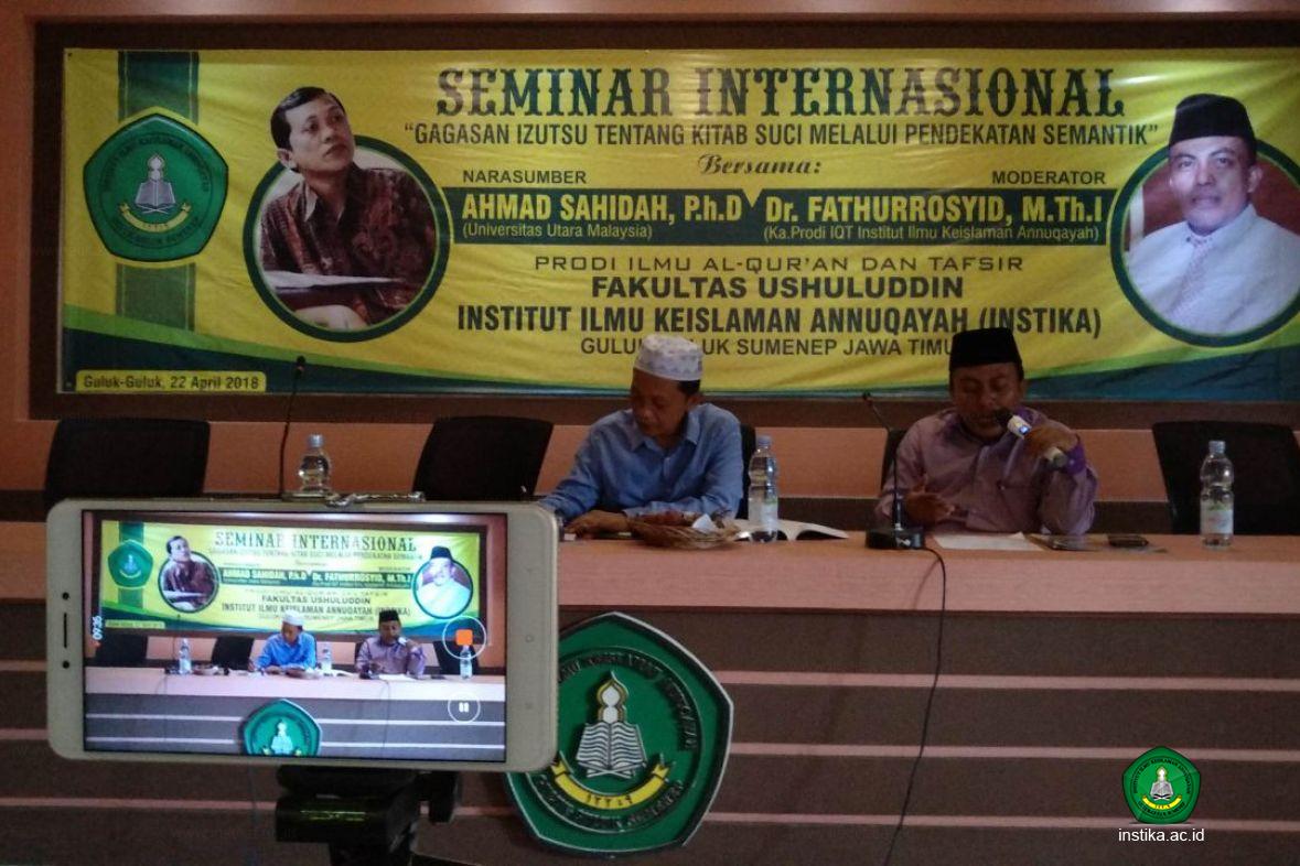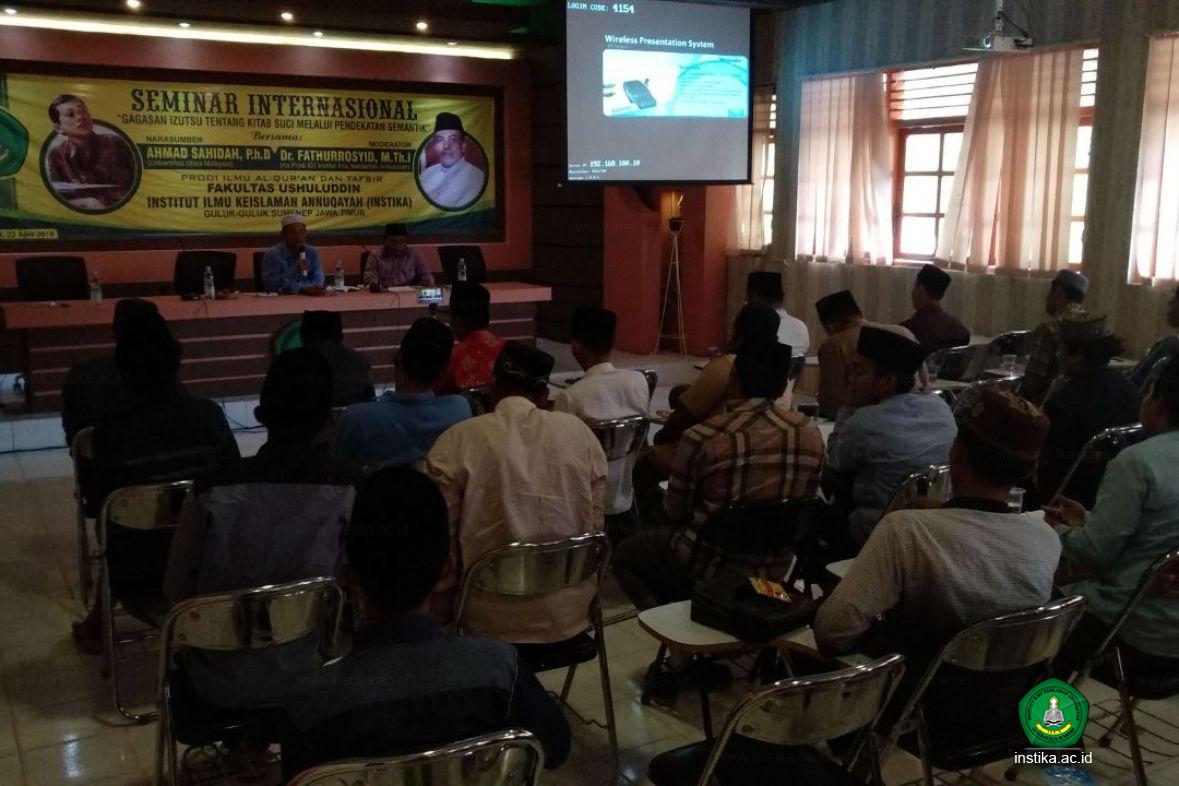 Guluk-Guluk - INSTIKA - Program studi Ilmu Al-Qur’an dan Tafsir (IQT) Fakultas Ushuluddin Institut Ilmu Keislaman Annuqayah (INSTIKA) Guluk-Guluk Sumenep mengadakan Seminar Internasional dengan tema Gagasan Izutsu tentang Kitab Suci melalui Pendekatan Semantik di Ruang Pertemuan INSTIKA, Ahad (21/4/2018).