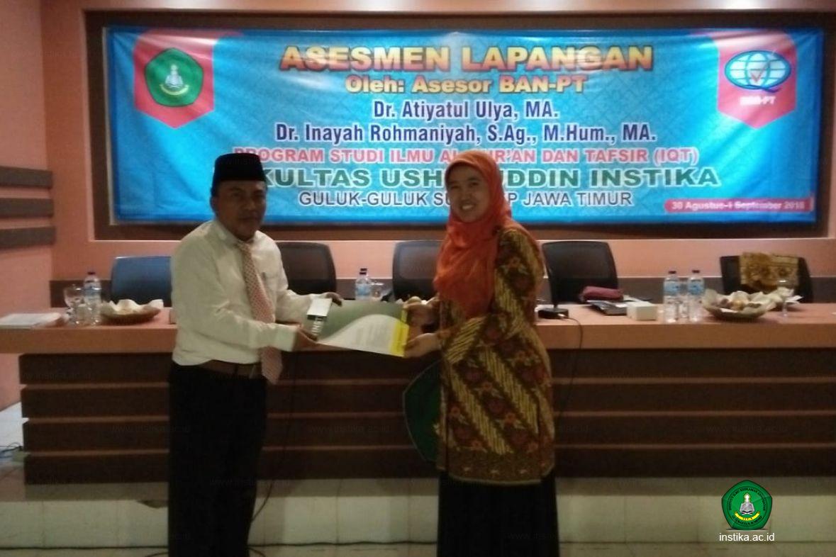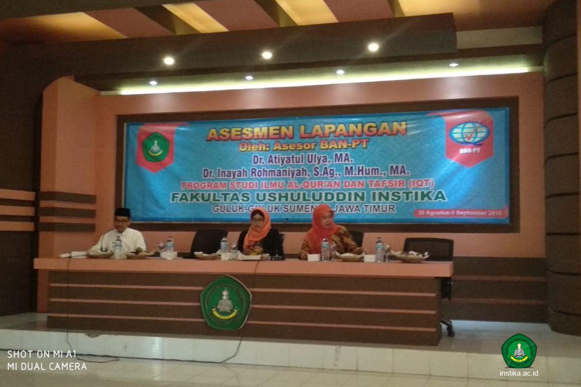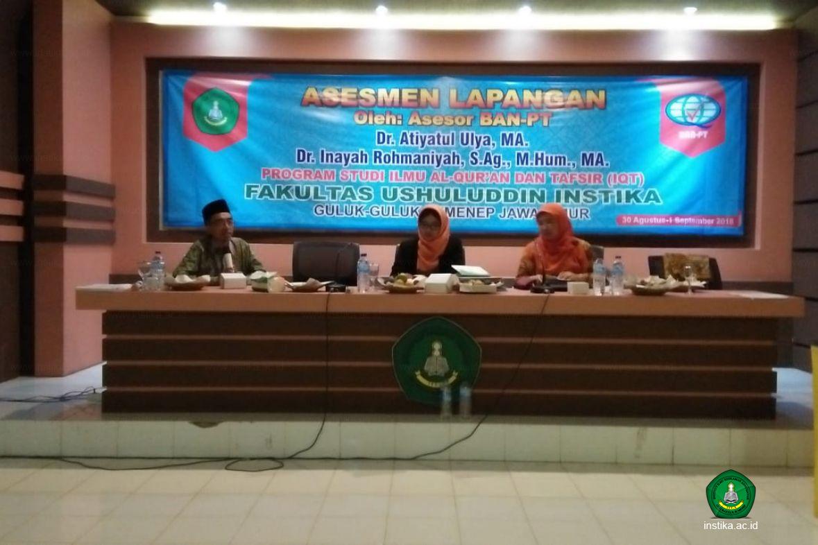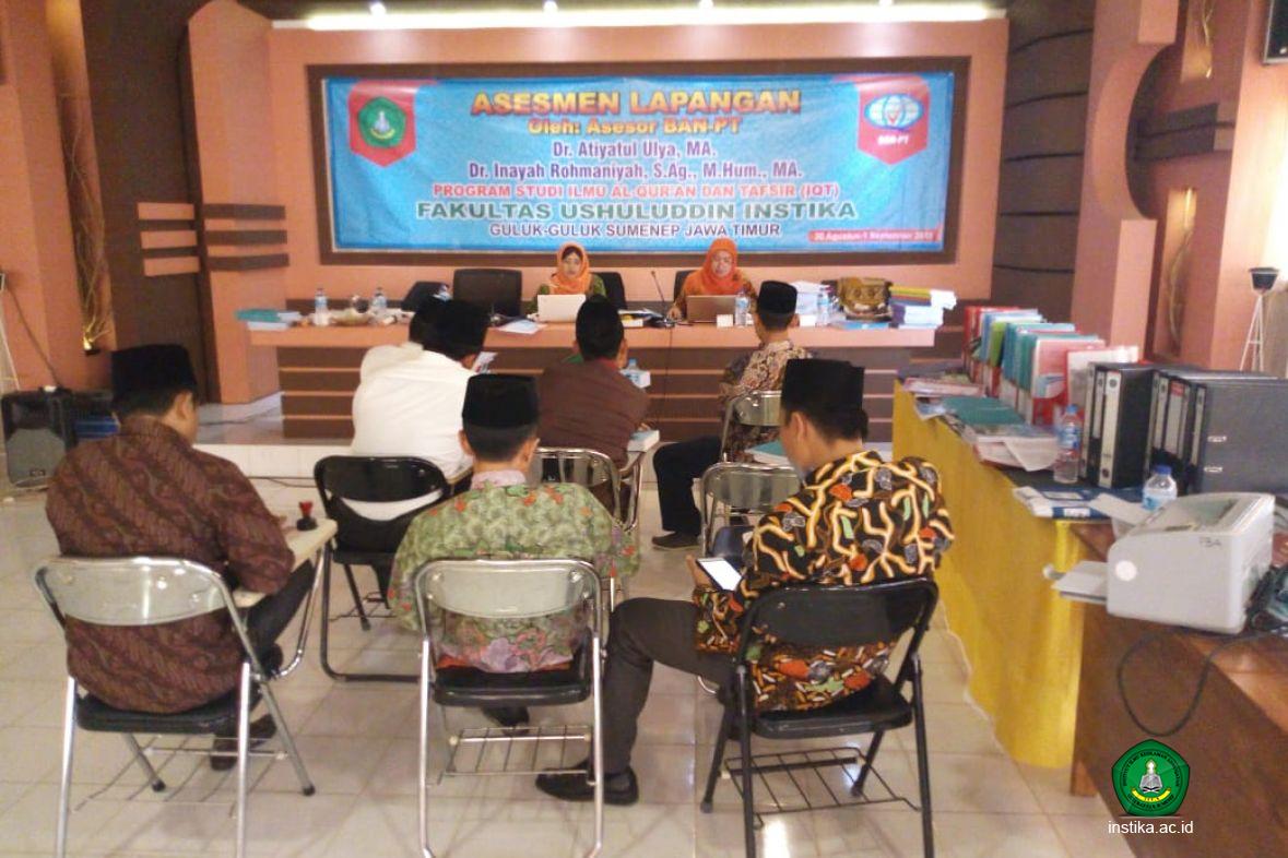 Guluk-Guluk – INSTIKA - Program Studi Ilmu Al-Qur’an dan Tafsir (IQT) Fakultas Ushuluddin Institut Ilmu Keislaman Annuqayah (INSTIKA) Guluk-Guluk Sumenep menerima Tim Asesor Badan Akreditasi Nasional Perguruan Tinggi (BAN-PT) yang akan melaksanakan Asesmen Lapangan Program Studi S1 IQT di Ruang Pertemuan INSTIKA, Jumat (31/8/2018).
