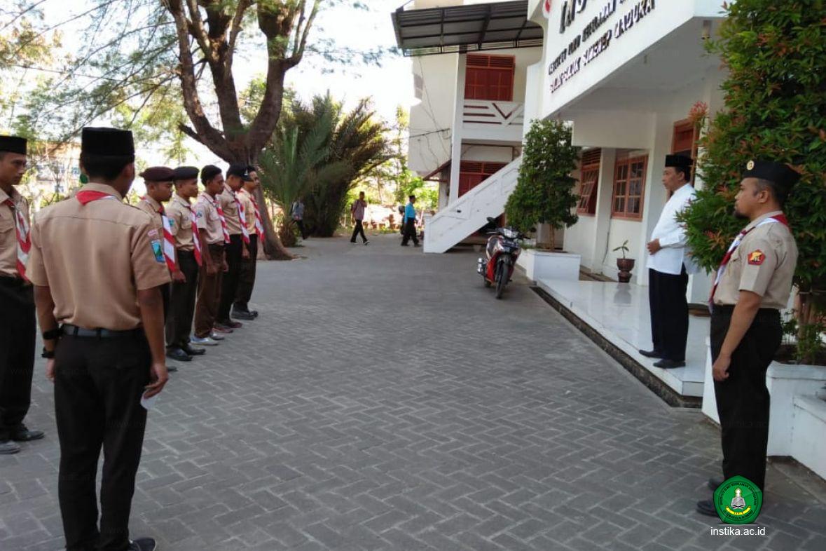 Guluk-Guluk - INSTIKA - Wakil Rektor III Institut Ilmu Keislaman Annuqayah (INSTIKA) Guluk-Guluk Sumenep, K. H. A. Washil Hasyim, M.Pd., dan Ketua Gudep 08.171, Muizzi, melepas keberangkatan kontingen Pramuka INSTIKA ke acara Raimuna Daerah (Raida) XIII, Bumi Perkemahan Kosambiwojo, Jombang , Jawa Timur, Sabtu (29/09/2018).