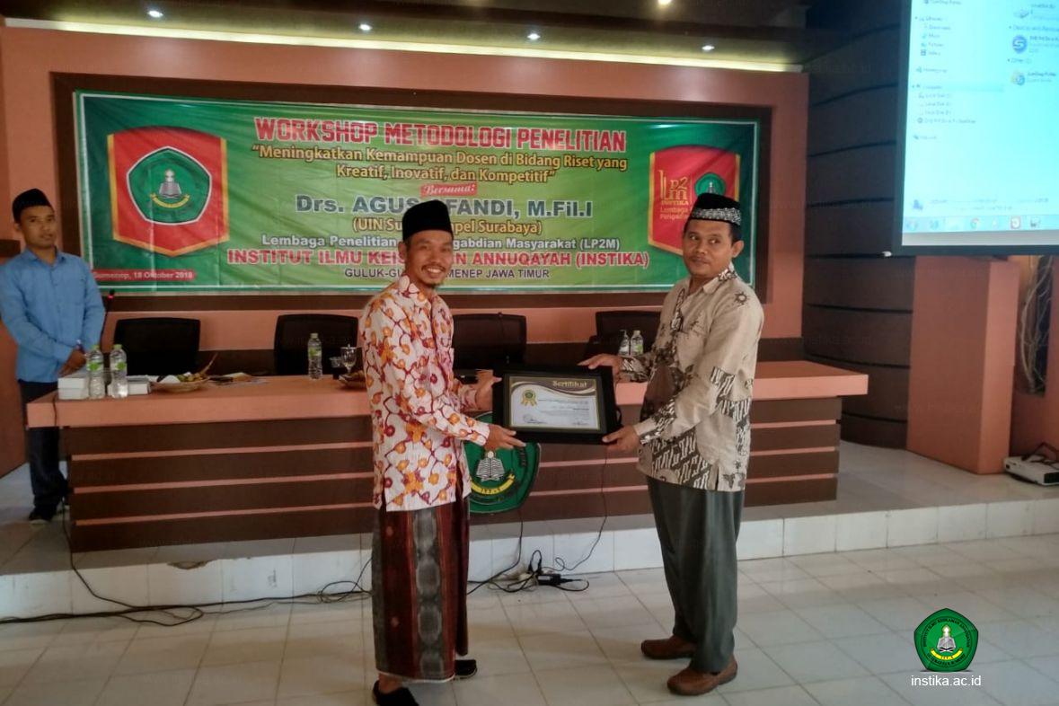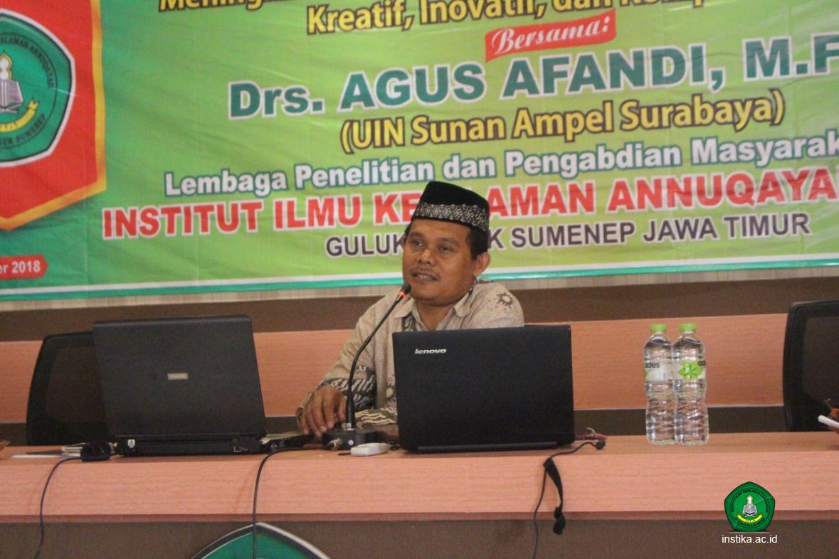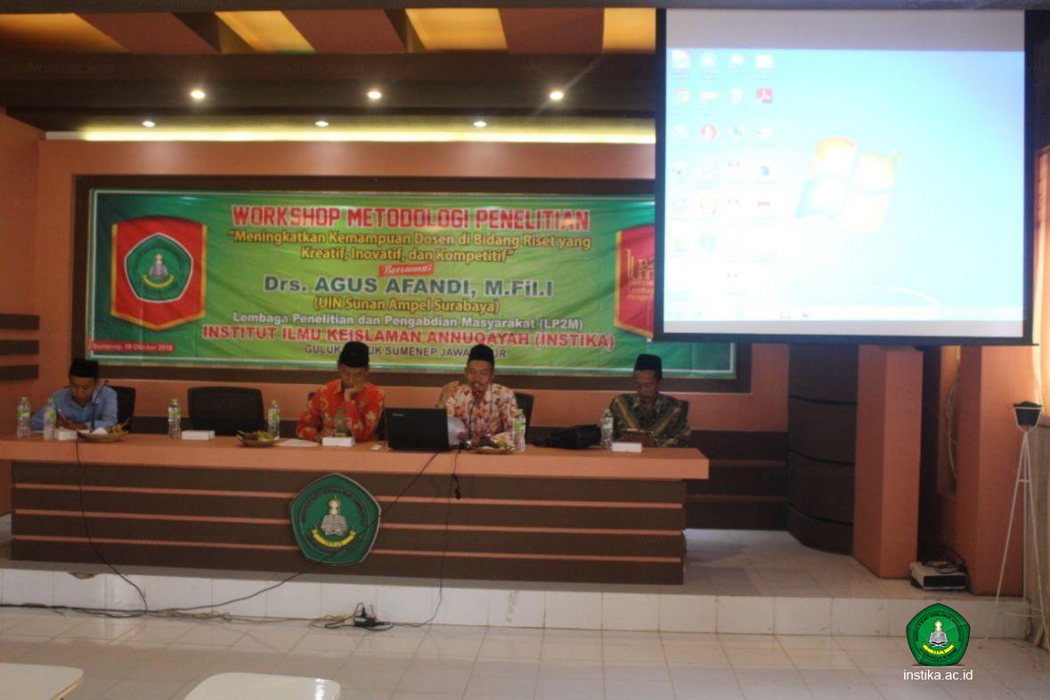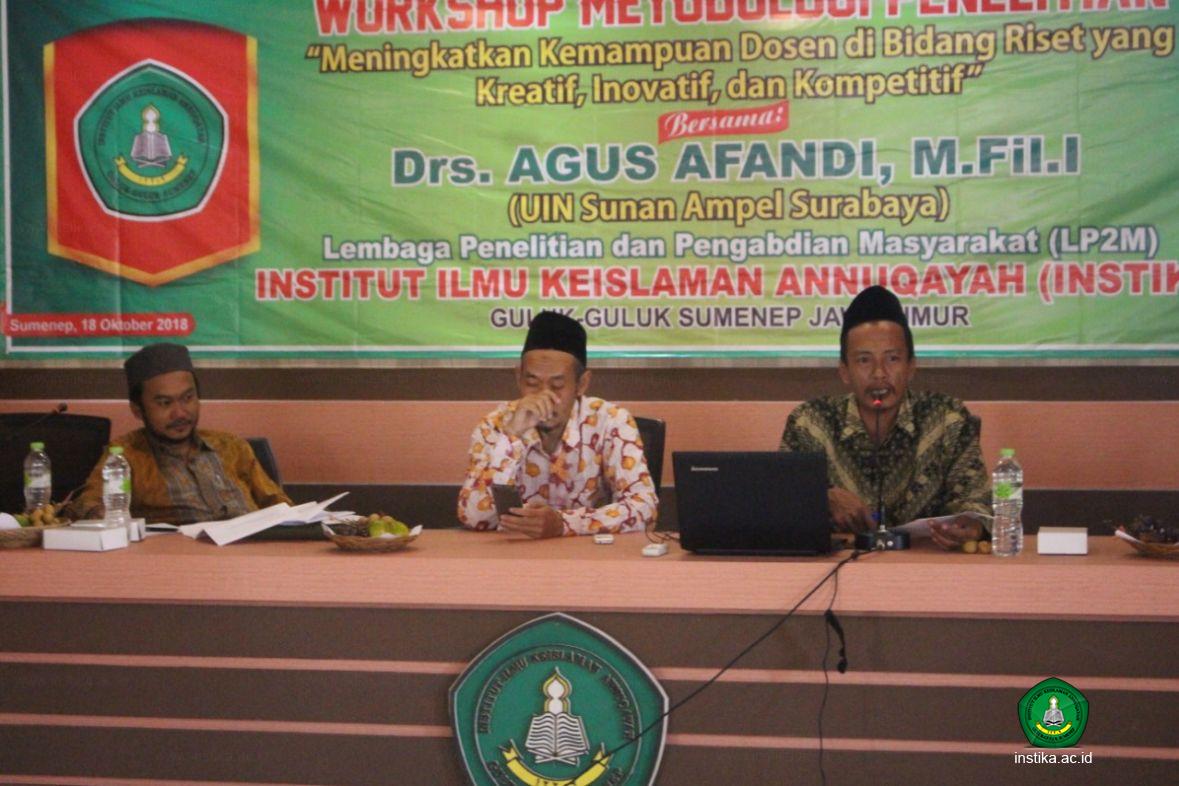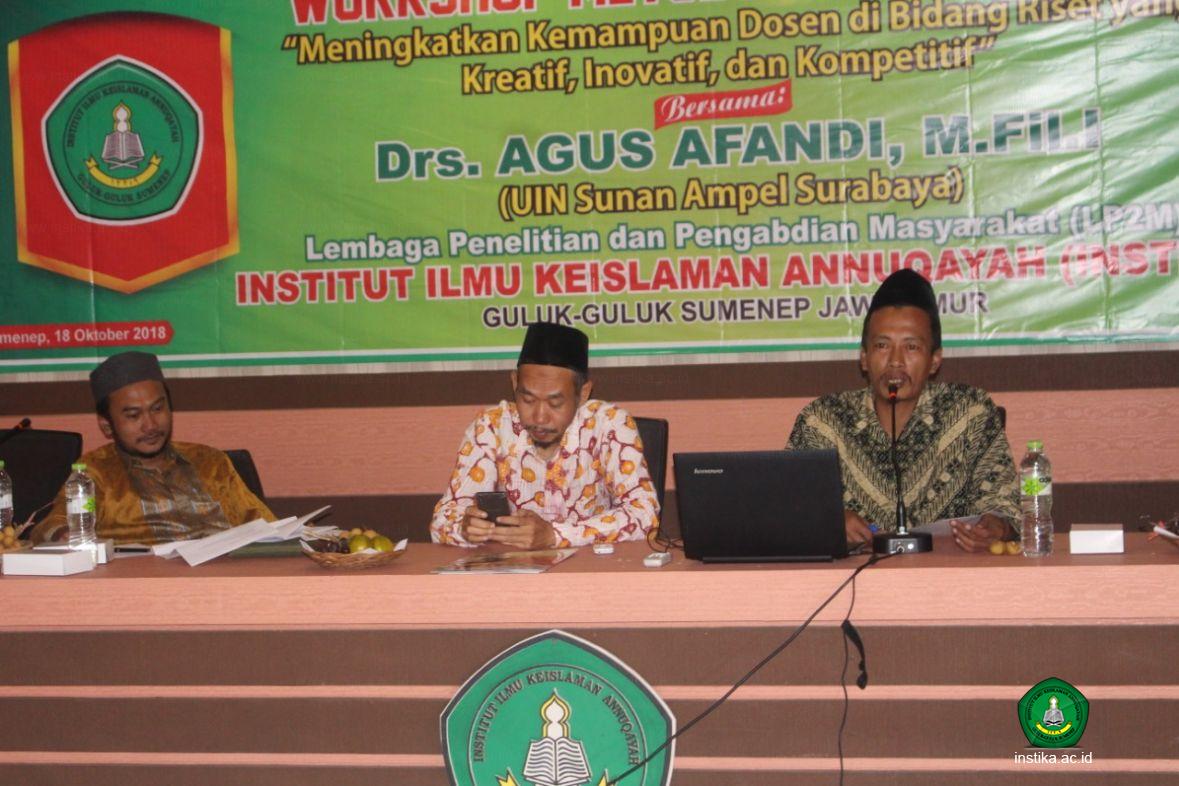 Guluk-Guluk – INSTIKA - Lembaga Penelitian dan Pengabdian kepada Masyarakat (LP2M) Institut Ilmu Keislaman Annuqayah (INSTIKA) Guluk-Guluk Sumenep mengadakan Workshop Metodologi Penelitian bersama Drs. Agus Afandi, M.Fil.I. dari UIN Sunan Ampel Surabaya, Kamis (18/10/2018), di Ruang Pertemuan INSTIKA.