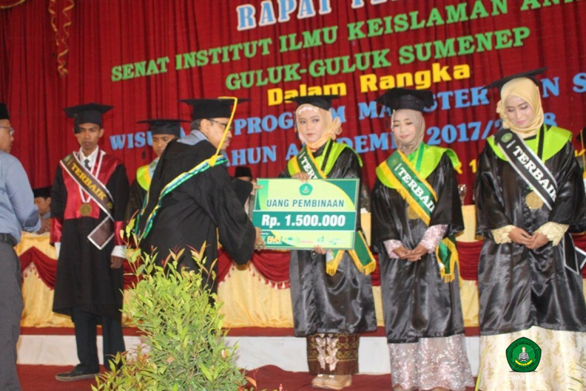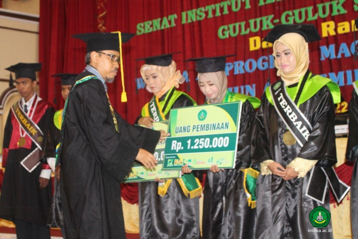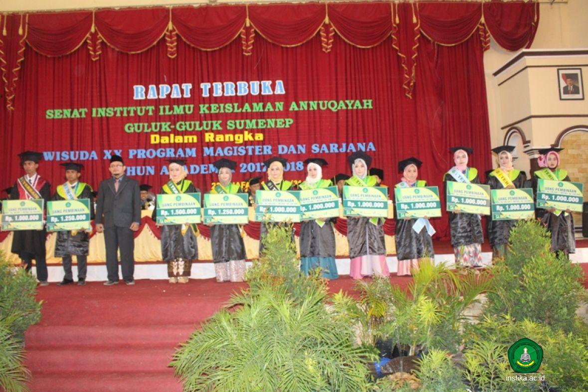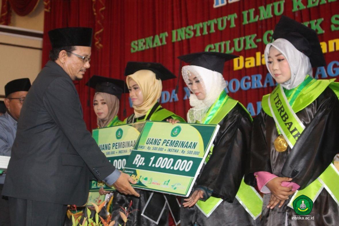 Masing-masing wisudawan dan wisudawati terbaik tersebut mendapat uang pembinaan dari INSTIKA dan dari Bank Mini Syariah INSTIKA (BMSI). Uang pembinaan terbaik tingkat institut sebesar Rp. 1.500.000. (Satu juta lima ratus ribu rupiah), tingkat fakultas sebesar Rp. 1.250.000. (Satu juta dua ratus lima puluh ribu rupiah), tingkat prodi sebesar Rp. 1.000.000. (Satu juta rupiah).