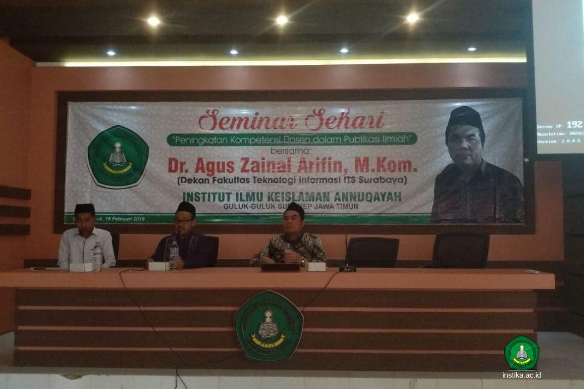 Guluk-Guluk – INSTIKA - Institut Ilmu Keislaman Annuqayah (INSTIKA) Guluk-Guluk Sumenep mengadakan Seminar kepenulisan dan publikasi ilmiah bersama Dr. Agus Zainal Arifin, M.Kom., dekan Fakultas Teknologi Informasi ITS Surabaya, Sabtu (16/2/2019) di Ruang Pertemuan INSTIKA.