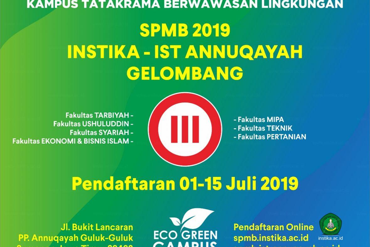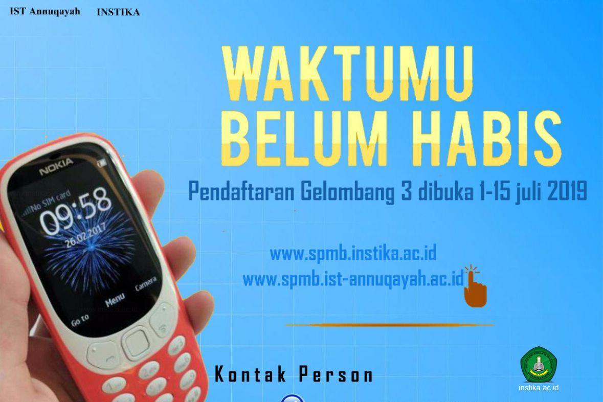 Guluk-Guluk - INSTIKA - Ketua panitia Seleksi Penerimaan Mahasiswa Baru (SPMB) Institut Ilmu Keislaman Annuqayah (INSTIKA) dan Institut Sains dan Teknologi (IST) Annuqayah Guluk-Guluk Sumenep, Drs. Abdul Halim, M.Pd.I., mengabarkan bahwa SPMB gelombang ke-3 tinggal lima hari lagi. "Sebagaimana dijadwalkan, pendaftaran SPMB Gelombang 3 akan dibuka pada hari Senin mendatang yakni tanggal 1 sampai 15 Juli 2019," katanya saat ditemui di kantornya, Rabu (26/6/2019).