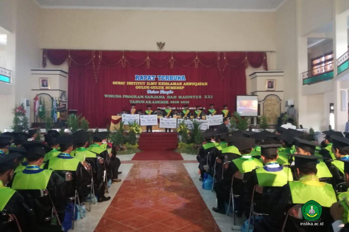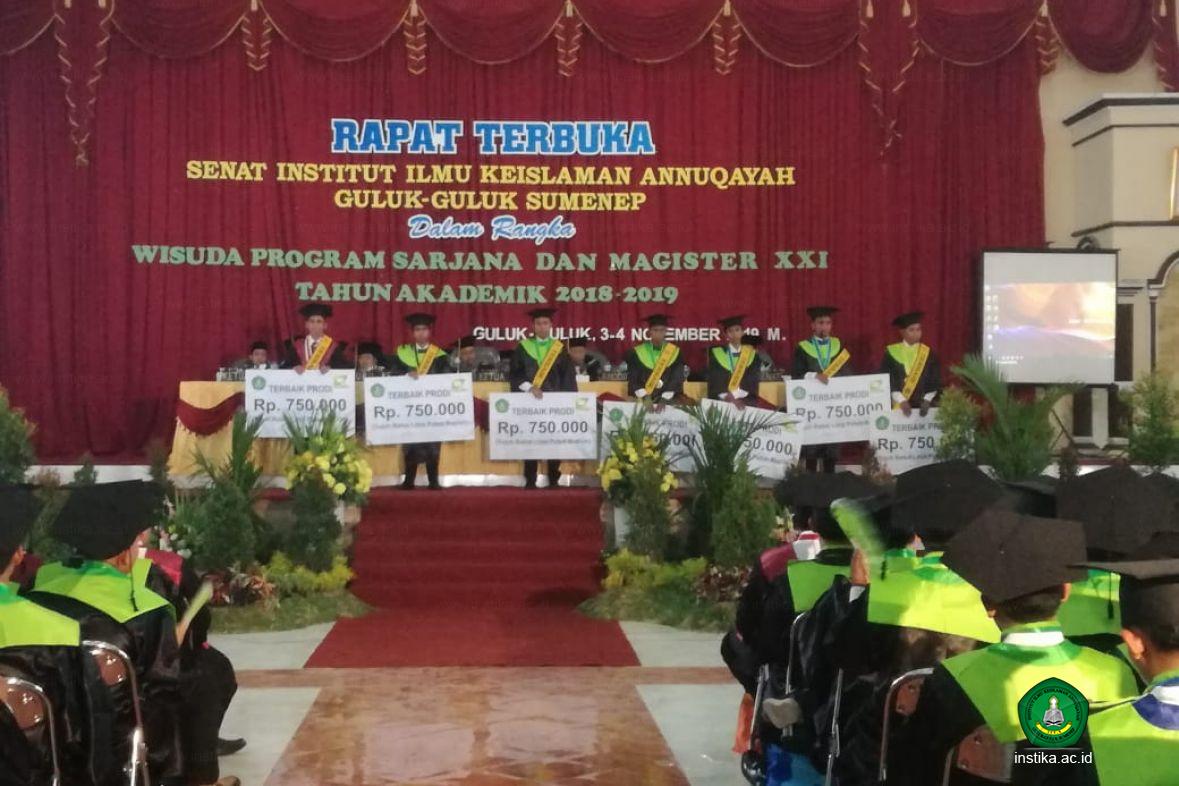 Guluk-Guluk - INSTIKA - Setiap pelaksanaan wisuda, umumnya ada sesi pemberian penghargaan terhadap wisudawan atau wisudawati terbaik dan berprestasi. Kali ini, Institut Ilmu Keislaman Annuqayah (INSTIKA) Guluk-Guluk Sumenep, yang hari ini (3/11/2019), melaksanakan Rapat Terbuka dalam rangka Wisuda Program Sarjana dan Magister ke-21 di Aula Asysyarqawi INSTIKA, juga memberikan penghargaan terhadap peserta wisudawan terbaik dan berprestasi.