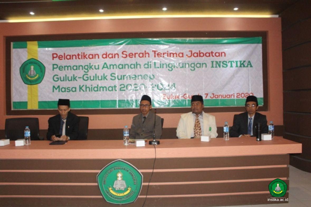Guluk-Guluk – INSTIKA - Para pejabat yang akan membantu rektor baru dalam menjalankan amanah di lingkungan Institut Ilmu Keislaman Annuqayah (INSTIKA) Guluk-Guluk Sumenep Masa Khidmat 2020-2024 hari ini (Selasa, 07/01/2020) dilantik di Ruang Pertemuan INSTIKA.