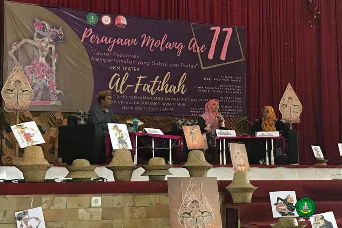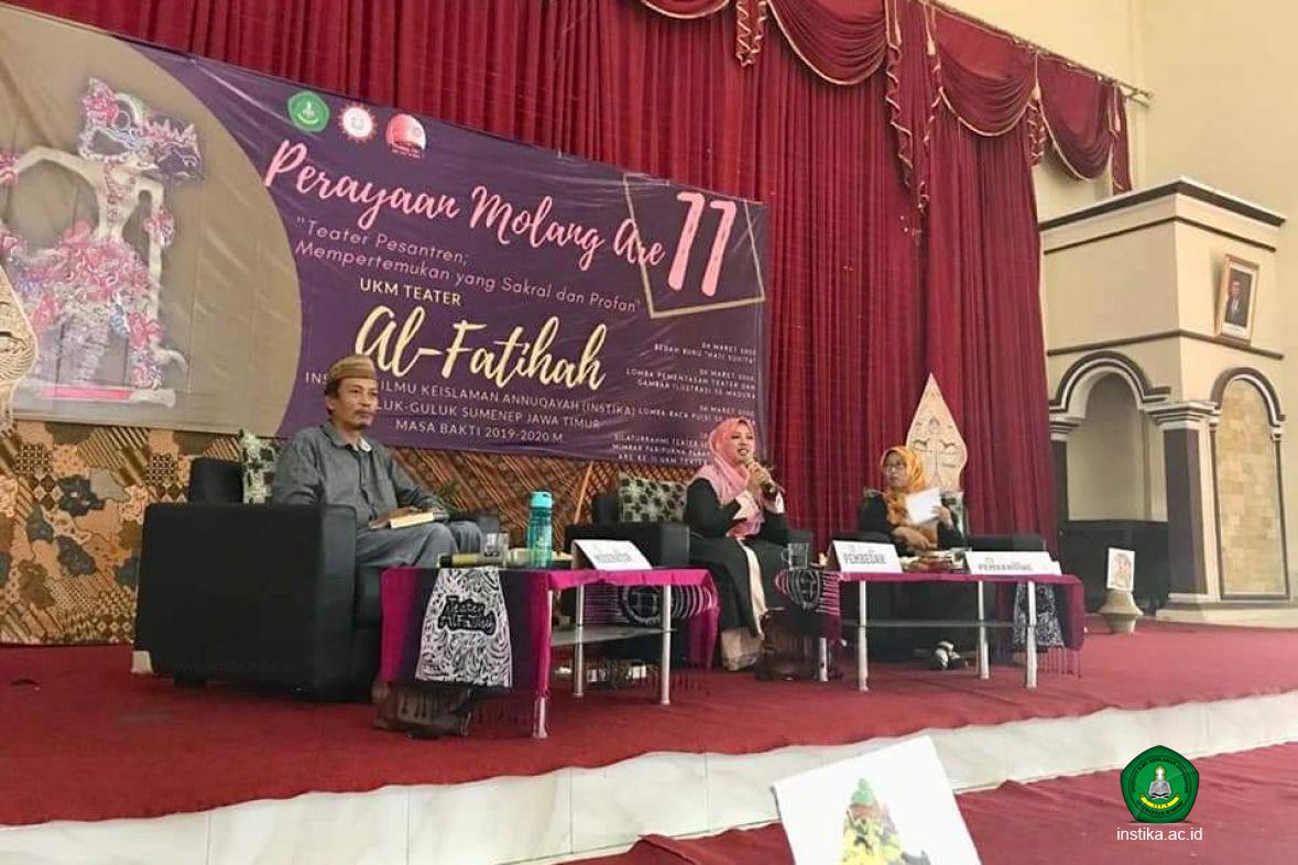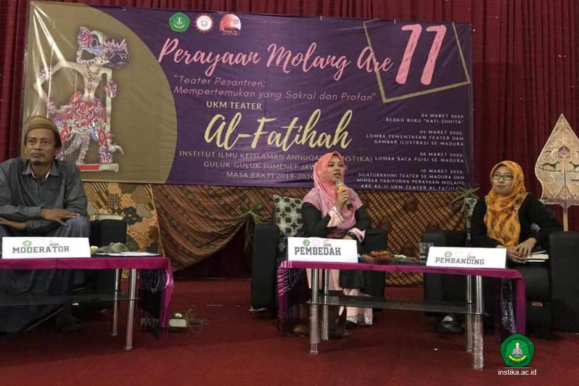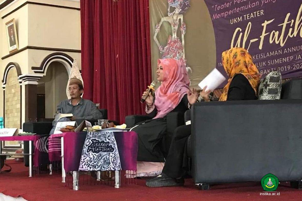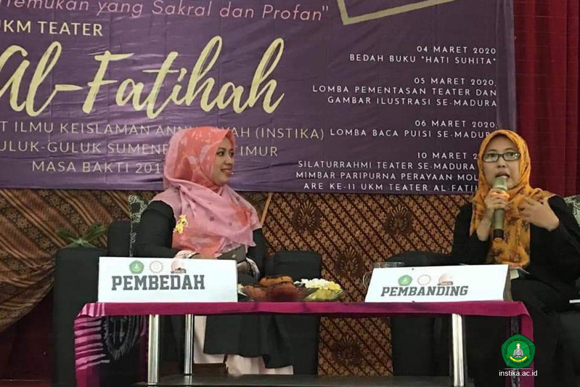 Khilma Anis hadir ke Annuqayah (Rabu, 4/3/2020) memenuhi undangan Unit Kegiatan Mahasiswa (UKM) Teater Al-Fatihah INSTIKA Putri. "Kami mengundang Ning Khilma untuk bedah bukunya (Hati Suhita) di ultah Teater Al-Fatihah yang ke-11," ujar Asriyani ketua panitia.