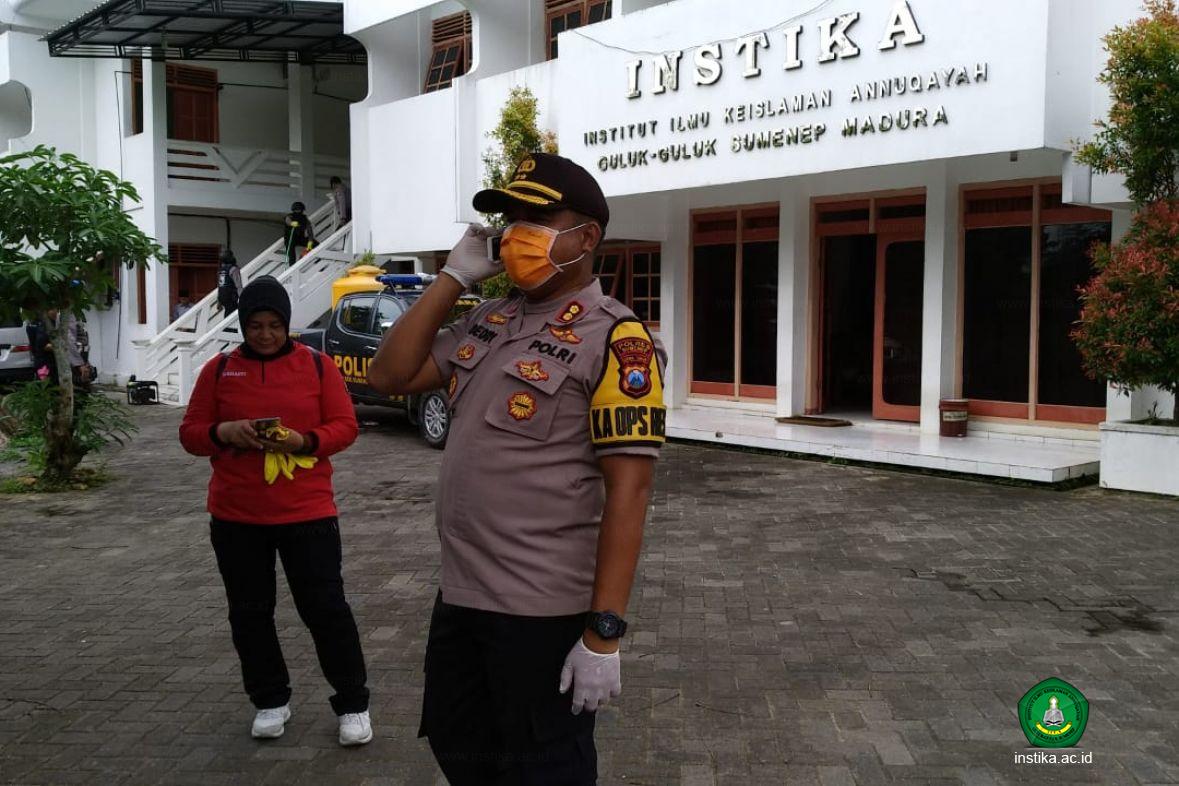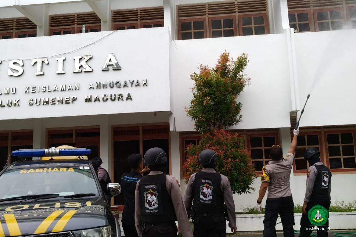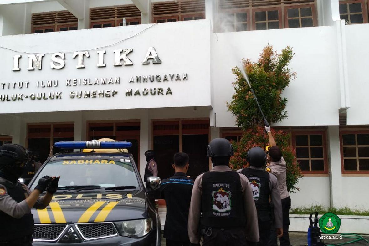 "Kami mengucapkan terima kasih kepada Polres Sumenep dan jajarannya yang telah melakukan penyemprotan di lingkungan kampus INSTIKA," ujar wakil rektor 2, KH. Mohammad Hosnan, M.Pd.