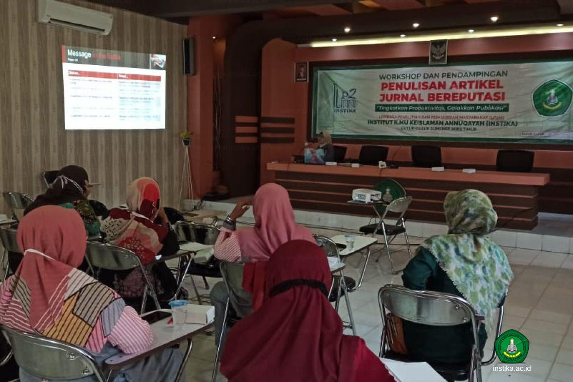 Persoalan itulah yang memantik LP2M mengadakan Workshop dan Pendampingan Penulisan Artikel Jurnal Bereputasi dengan tema "Tingkatkan Produktivitas, Galakkan Publikasi", Rabu (27/1/2021), di Ruang Pertemuan INSTIKA.