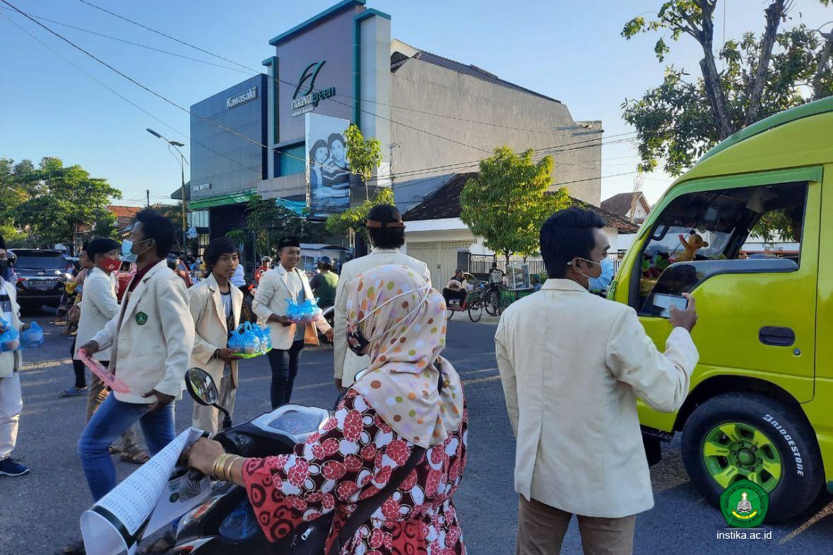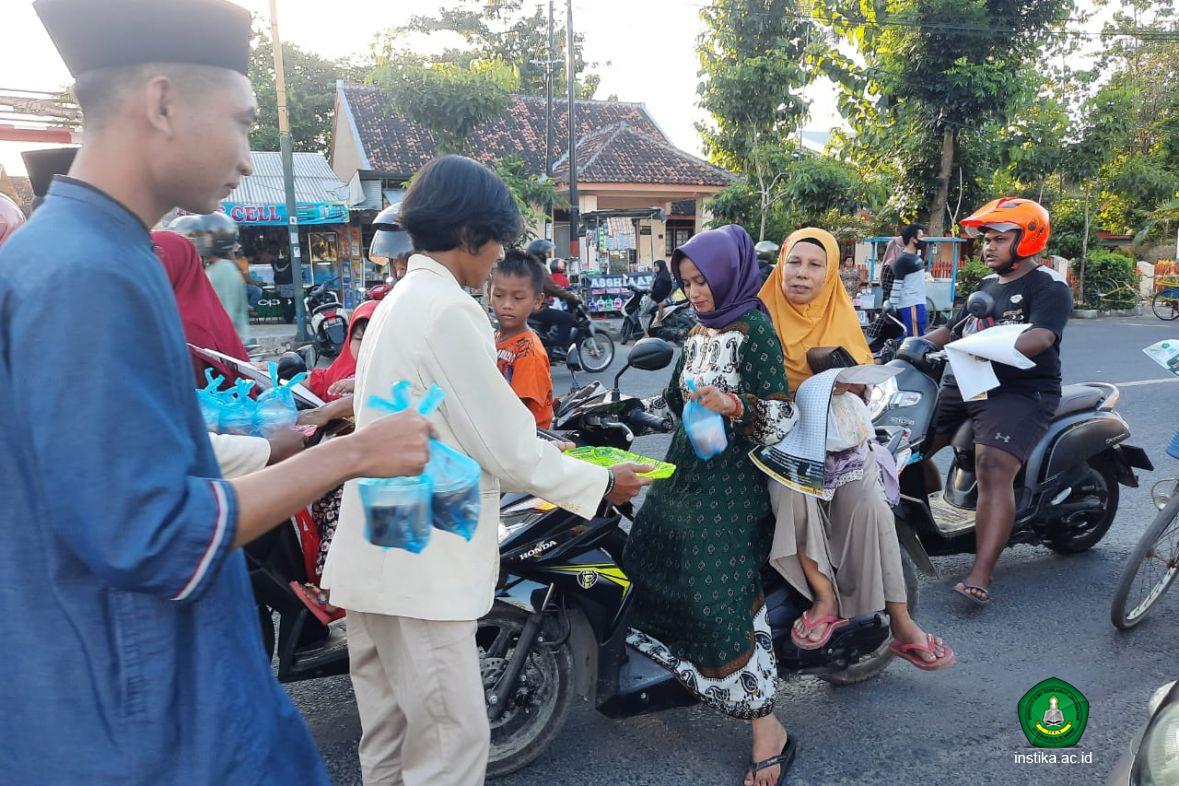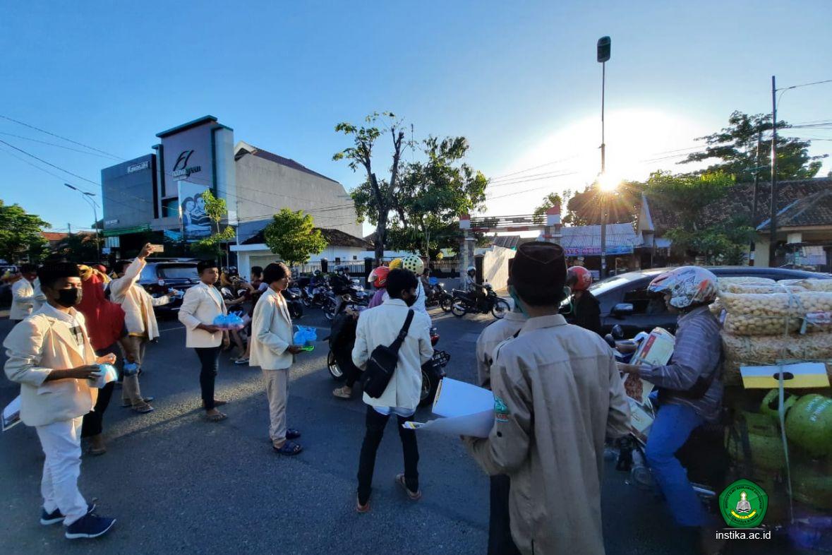 Mereka membagi-bagikan takjil atau makanan untuk buka puasa kepada para pengguna jalan di sekitar jalan raya Taman Tajmara Sumenep Kota, Kamis (20/4/2021).