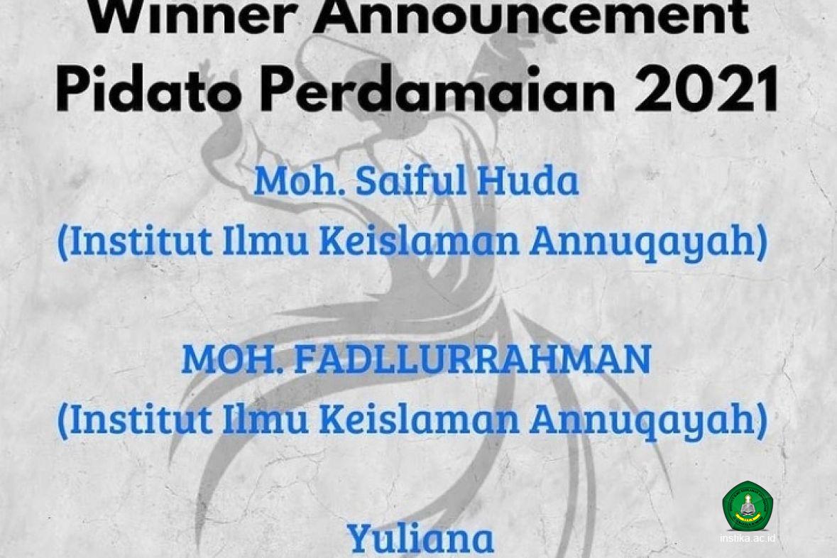 Keduanya ditetapkan sebagai peraih juara lomba Cipta Pidato Perdamaian. Lomba ini digelar Institut Agama Islam Negeri (IAIN) Kudus, Rabu (7/7/2021), dalam acara Parade Literasi Sufi.