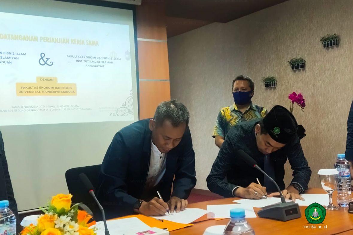 Kerja sama itu ditandai dengan penandatanganan naskah kerja sama pada Senin (25/11/2021) di ruang meeting IDIA. Kiai Ahmad Majdi Tsabit, MM selaku dekan FEBI INSTIKA, Dr. KH. Holilur Rahman MHI selaku dekan FEBI IDIA, dan Lailatul Qamariah dari Halal Center UTM, yang menandatangani kerja sama tersebut.
