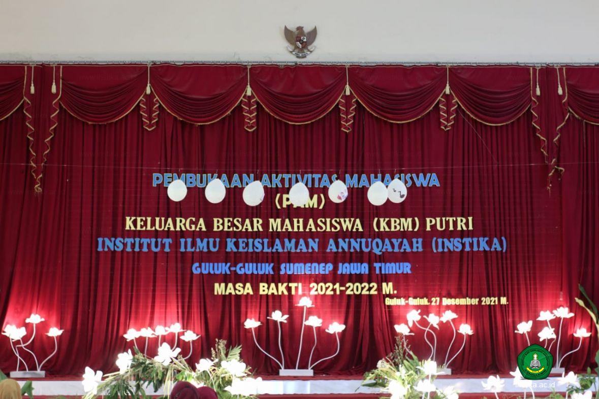 Guluk-Guluk – INSTIKA - Seluruh kegiatan organisasi mahasiswa yang tergabung dalam Keluarga Besar Mahasiswa (KBM) Putri Institut Ilmu Keislaman Annuqayah (INSTIKA) Guluk-Guluk Sumenep masa bakti 2021-2022 resmi diaktifkan, Senin (27/12/2021), di Aula As-Syarqawi.