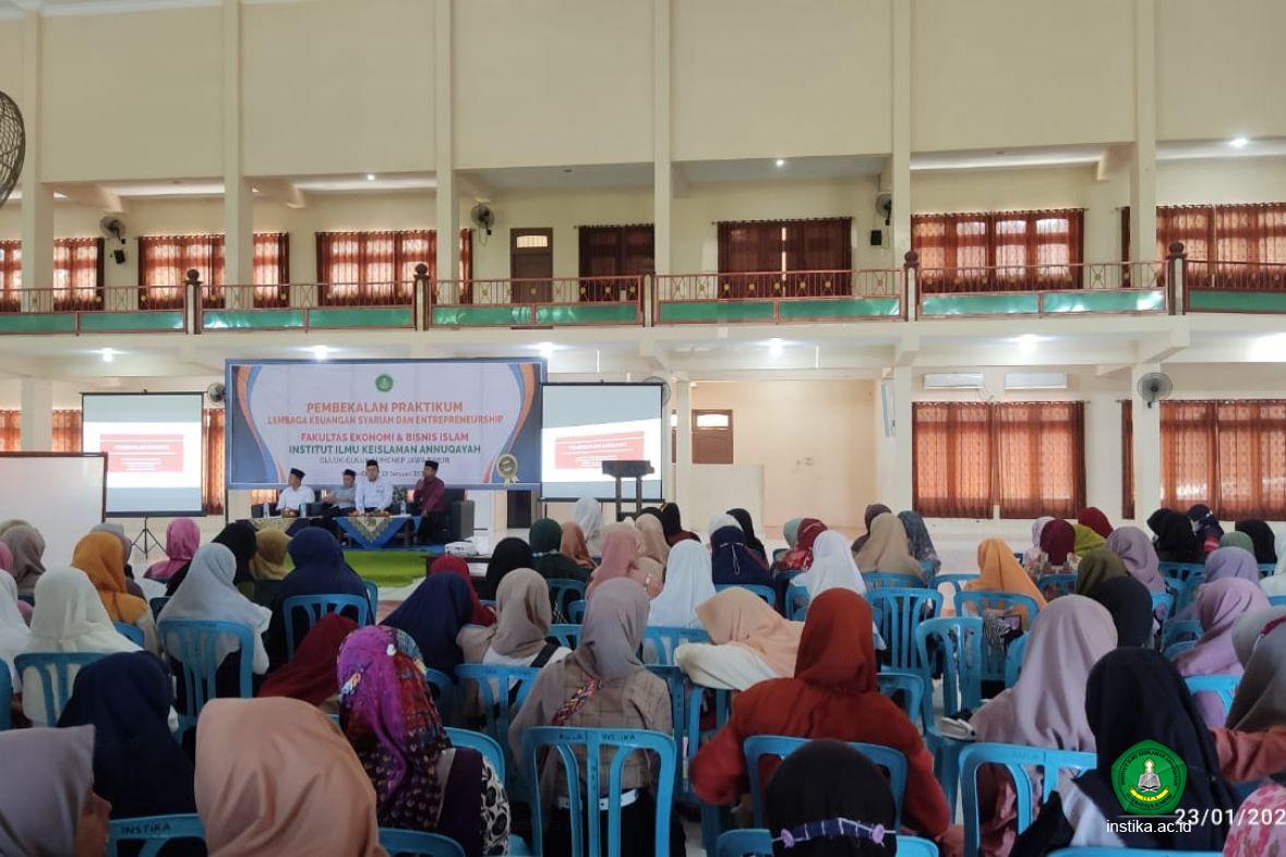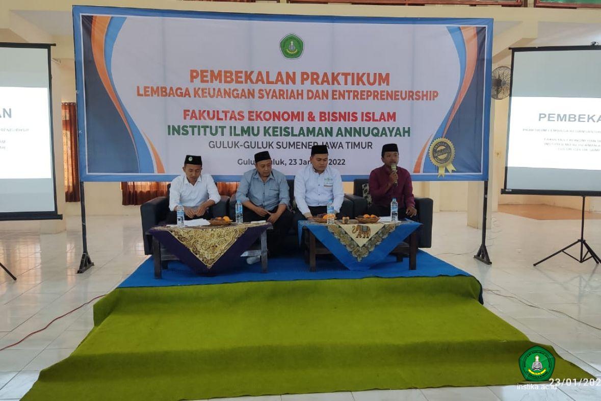 Guluk-Guluk – INSTIKA - Sebelum menerjunkan mahasiswa untuk melaksanakan program praktikum di lembaga-lembaga keuangan syariah, Fakultas Ekonomi dan Bisnis Islam (FEBI) Institut Ilmu Keislaman Annuqayah (INSTIKA) Guluk-Guluk Sumenep menggelar Pembekalan Praktikum Lembaga Keuangan Syariah dan Seminar Enterpreneurship di Aula Asy-syarqawi, Ahad (23/01/2022).