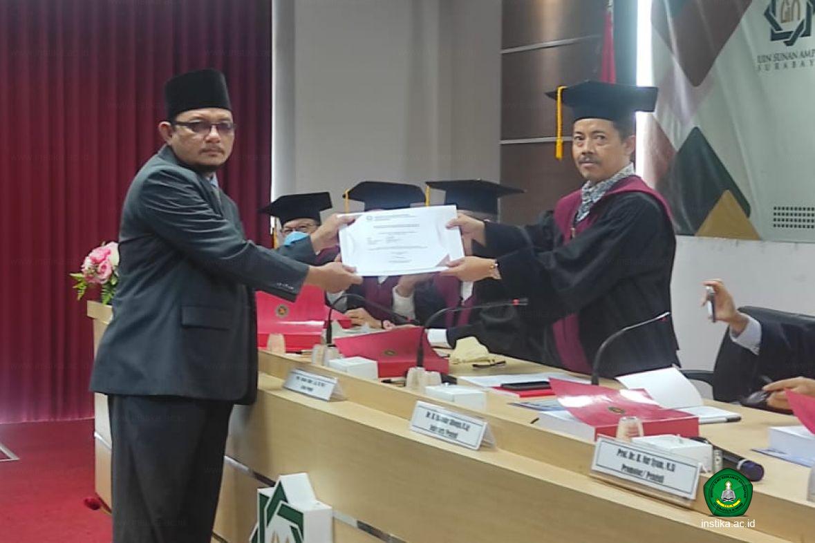 Surabaya - INSTIKA - Ujian Terbuka Program Doktor Pascasarjana UIN Sunan Ampel Surabaya itu akan dimulai pukul 13:30 WIB, Jumat (12/08/2022). Peserta ujian, Tajus Subqi, hadir ke lokasi ujian sekitar pukul 13:10 WIB. Uniknya, Tajus Subqi dari rumahnya di Pamekasan ke tempat ujian (UINSA Surabaya) mengendarai sepeda motor.