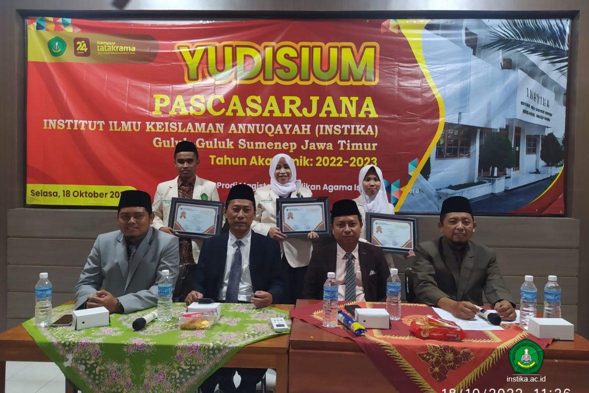 Guluk-Guluk - INSTIKA - Tercatat 39 mahasiswa program studi Pendidikan Agama Islam (PAI) Program Magister (S-2) Pascasarajana Institut Ilmu Keislaman Annuqayah (INSTIKA) Guluk-Guluk Sumenep mengikuti Yudisium, Selasa (18/10/2022), di Ruang Pertemuan Pascasarjana.