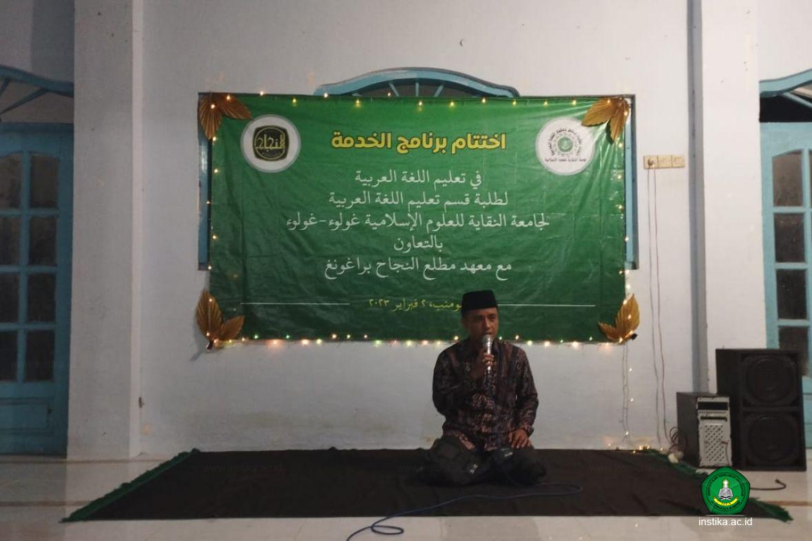 Kaprodi PBA, Kiai Ahmad Faris, M.Pd.I., melakukan penutupan, salah satunya, di Pondok Pesantren Mathla'un Najah, Bragung, Guluk-Guluk, Sumenep. Kaprodi mengucapkan banyak terima kasih kepada pihak lembaga yang telah bersedia ditempati mahasiswa PBA untuk melaksanakan pengabdian mengajar.