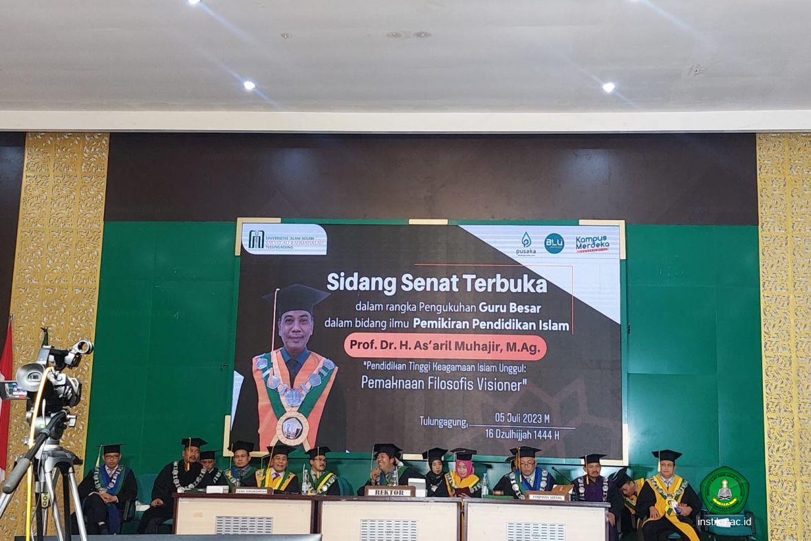 Tulungagung - INSTIKA - Rektor Institut Ilmu Keislaman Annuqayah (INSTIKA) Guluk-Guluk Sumenep, Drs. K.H. Ah. Syamli, M.Pd.I., menghadiri Pengukuhan Guru Besar Prof. Dr. H. As'aril Muhajir, M.Ag., di Universitas Islam Negeri (UIN) Sayyid Ali Rahmatullah Tulungagung, Rabu (05/07/2023).
