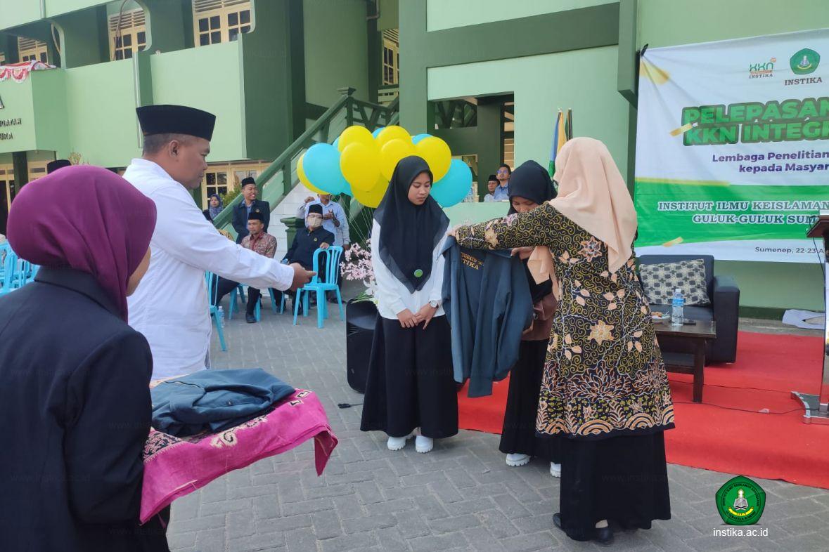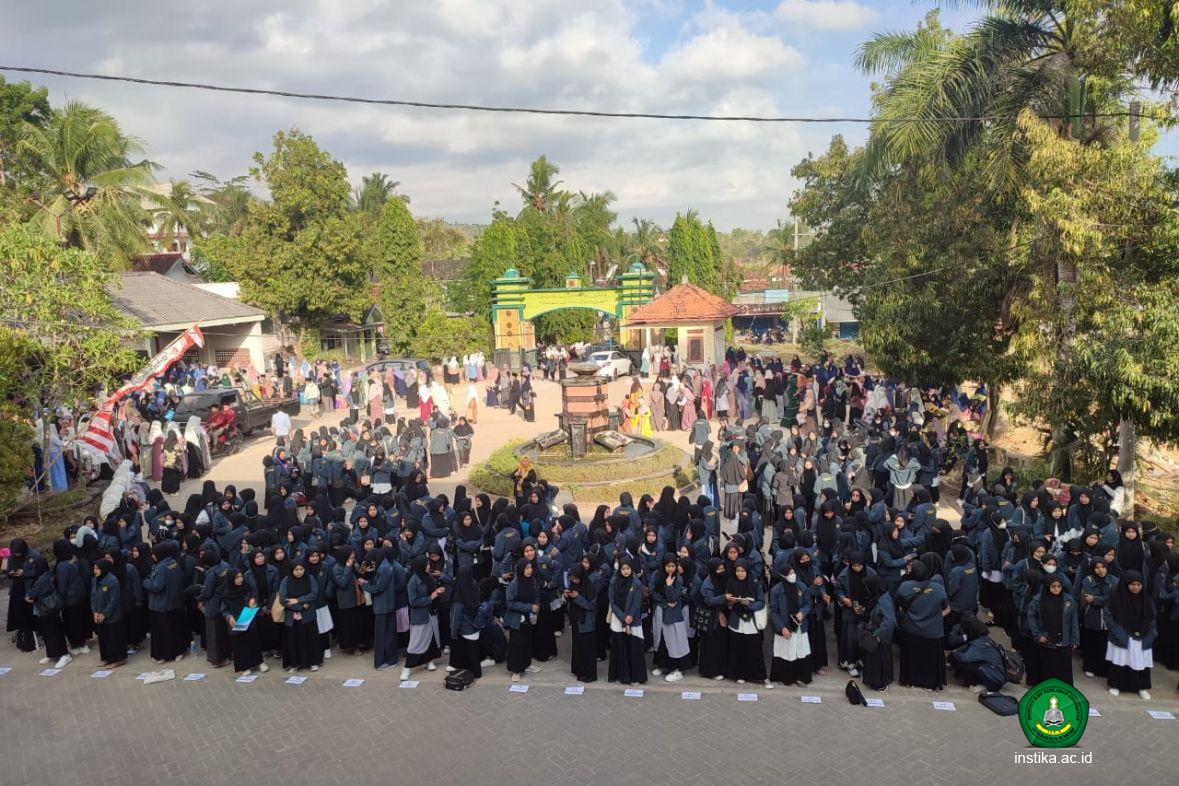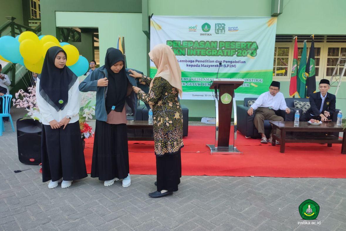 Guluk-Guluk - INSTIKA - Lembaga Penelitian dan Pengabdian kepada Masyarakat (LP2M) Institut Ilmu Keislaman Annuqayah (INSTIKA) Guluk-Guluk Sumenep melaksanakan pelepasan peserta Kuliah Kerja Nyata (KKN) Integratif 2023 putri, Selasa (22/8/2023), di halaman rektorat INSTIKA.