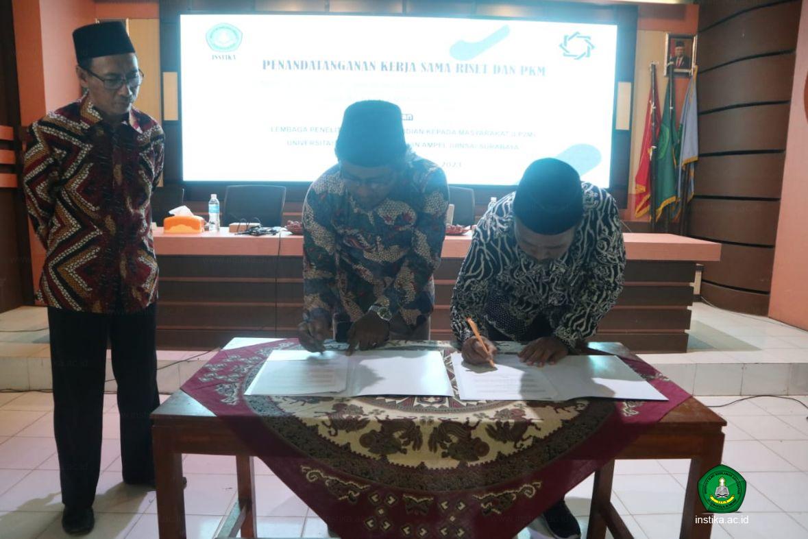 Kerja sama itu ditandai dengan penandatanganan Memorandum of Understanding (MoU) antara LP2M INSTIKA dengan LP2M UINSA Surabaya, Senin (28/08/2023), di Ruang Pertemuan INSTIKA. Dari pihak LP2M INSTIKA yang menandatangani MoU itu adalah Kepala LP2M INSTIKA, Paisun, M.Pd., sementara dari LP2M UINSA Surabaya adalah Kepala Pusat Penelitian dan Penerbitan LP2M UINSA Surabaya, Dr. Chabib Musthofa, M.Si.