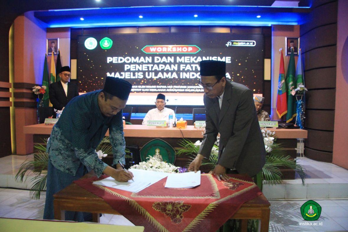 Secara resmi kerja sama itu dilakukan dengan penandatanganan Memorandum of Understanding (MoU) antara pihak INSTIKA dengan Komisi Fatwa MUI Jatim, Rabu (30/08/2023) di Aula Kiai Abdul Basith AS INSTIKA. Dari pihak INSTIKA yang menandatangani adalah Rektor Drs. KH. Ah. Syamli, M.Pd.I. Sementara dari Komisi Fatwa MUI Jatim adalah KH. Ma'ruf Khozin selaku Ketua Komisi Fatwa MUI Jatim.
