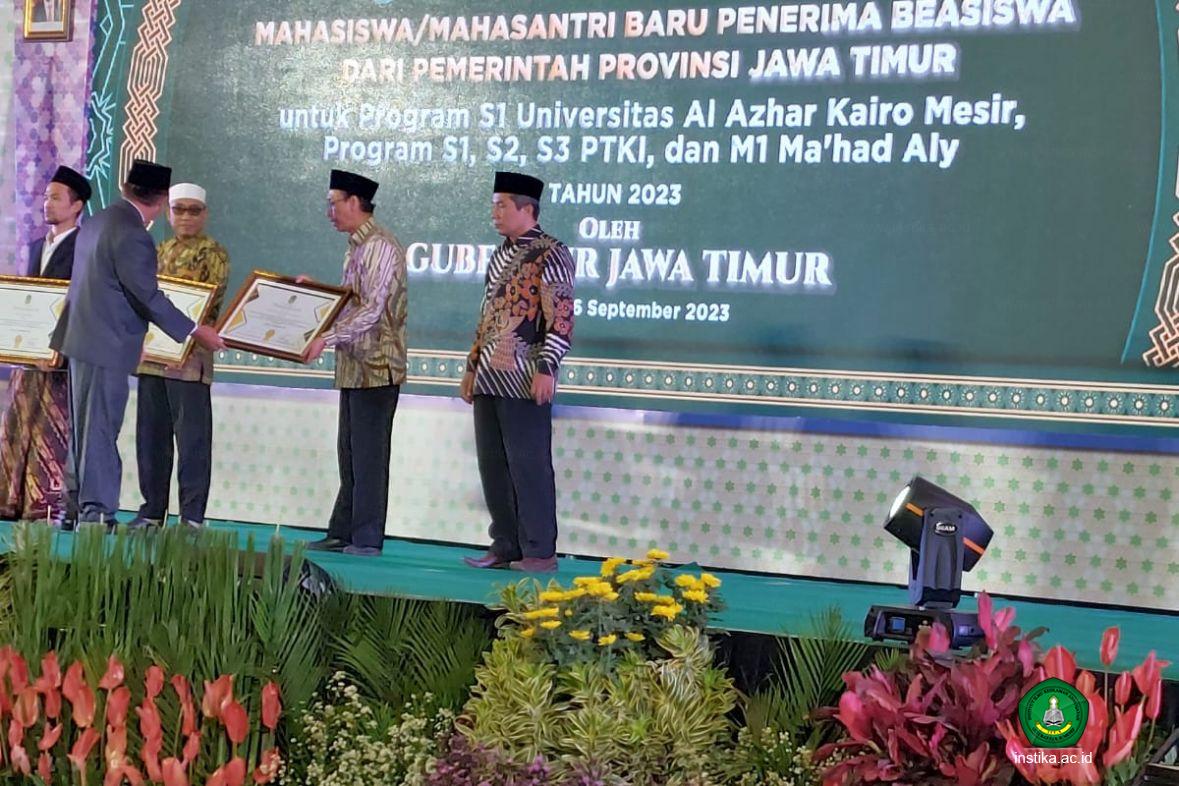 Rektor INSTIKA Drs. KH. Ah. Syamli, M.Pd.I., menerima cendera mata dari LPPD Jawa Timur, Rabu (06/09/2023), di Surabaya. Cendera mata itu diberikan kepada perguruan tinggi penyelenggara beasiswa dari Pemerintah Provinsi Jawa Timur. INSTIKA merupakan salah satu perguruan tinggi penyelenggara beasiswa kliah S-2 dari Pemprov Jatim.