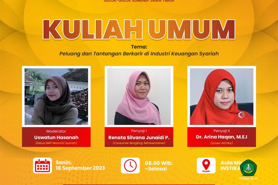 Guluk-Guluk - INSTIKA - Himpunan Mahasiswa Program Studi (HMP) Ekonomi Syariah (ES) dan Perbankan Syari’ah (PS) Fakultas Ekonomi dan Bisnis Islam (FEBI) Institut Ilmu Keislaman Annuqayah (INSTIKA) Guluk-Guluk Sumenep menggelar Kuliah Umum dengan tema “Tantangan dan Peluang Berkarir di Industri Keuangan Syariah,” Senin (18/09/2023) di Aula Mini INSTIKA.