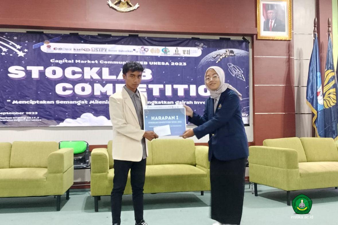 Kegiatan itu digelar oleh Fakultas Ekonomi dan Bisnis (FEB) Universitas Negeri Surabaya (UNESA). Terdapat 13 perguruan tinggi di Indonesia yang mengikuti kegiatan tersebut. Dalam kompetisi tersebut, KSPM GIBEI INSTIKA raih juara, Ahad (24/09/2023).